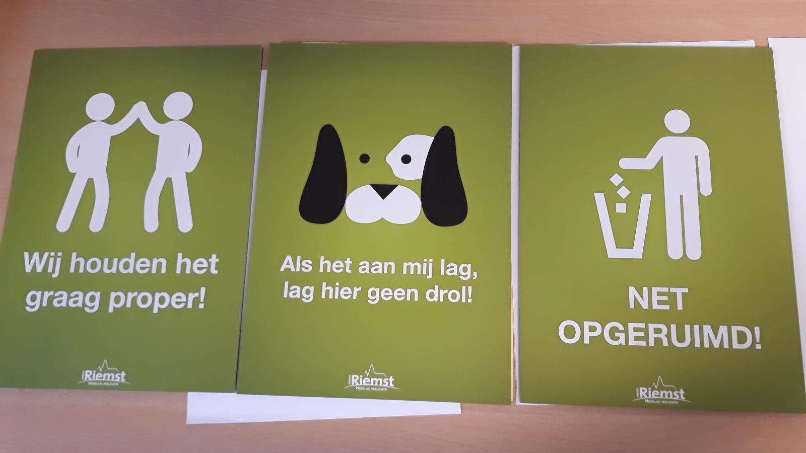 De gemeente zorgt voor genoeg gelegenheid om hondenpoepzakjes keurig op te ruimen, door vuilnisbakjes te plaatsen in elke deelgemeente voorzien van een sticker ‘hondenpoep in de bak’. Deze worden op regelmatige basis leeggemaakt door de Technische dienst. Op de plekken waar er veel last is van de problematiek, worden bordjes geplaatst met de tekst ‘hier geen hondenpoep’.
